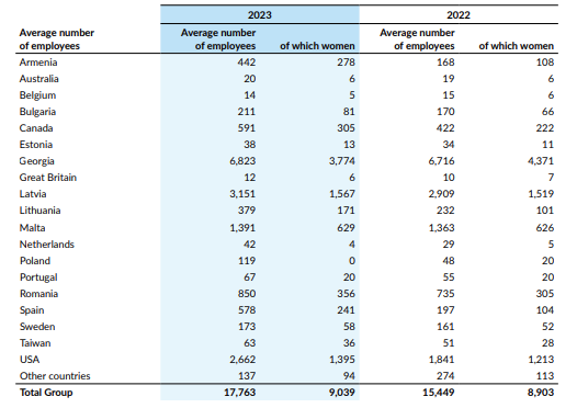 Georgia, foreign agents and Vladimir Putin: Evolution AB has its largest game studio in Tbilisi, Georgia, and 6,800 of the company's 1,600 employees are based in Georgia (38.6 per cent of all employees). The country has experienced a lot of turmoil related to a bill proposed to the Russian-friendly government in the country. There are fears of Russian invasion and great geopolitical uncertainty. What happens next is difficult to predict. Although Tbilisi is a major hub for Evolution, the company is well diversified, but war in Georgia would be a major damper on Evolution's ability to offer games in several key markets and should, in my opinion, hit the company's expected earnings significantly.