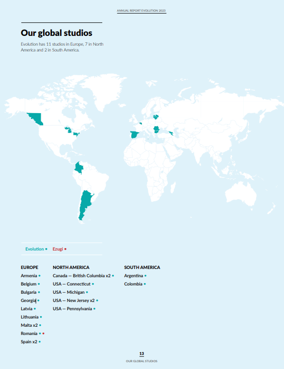 Here is the geographical spread of Evolution's studios: